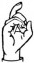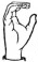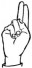На ћирилици написано СОЊА ДАНГУБИЋ састоји се из 12 слова [?]. Исписано ћириличном једноручном азбуком за глувонеме:
